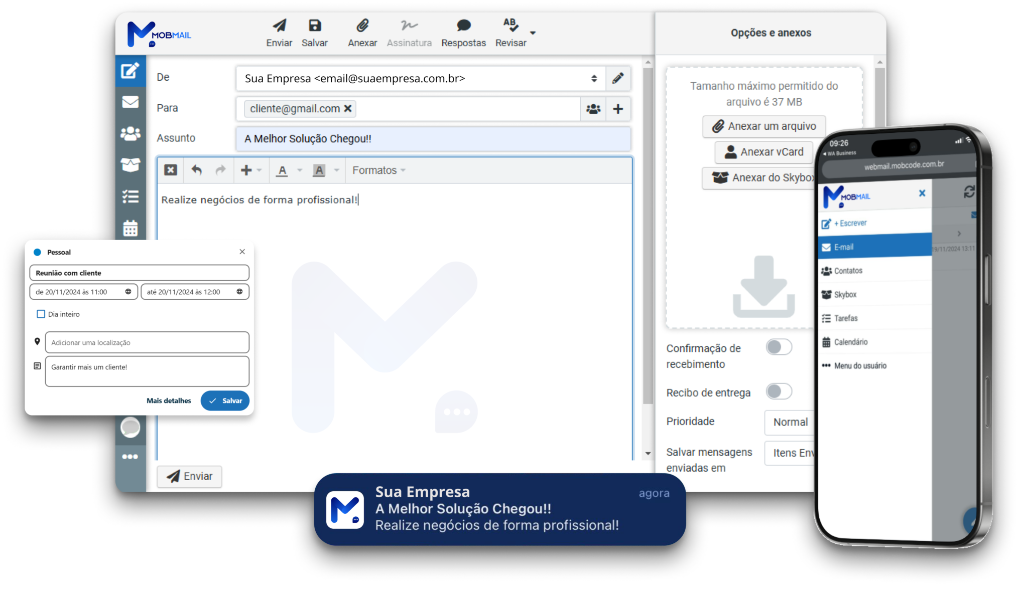 Você pode acessar seu e-mail de qualquer lugar, garantindo total mobilidade e integração entre plataformas.